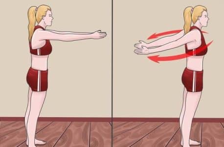 - تمرين لف الكتف: تقومي بالوقوف مع فرد الظهر جيداً، ثم تبدأ بلف كتفك الأيمن للوراء وذلك لعشر مرات متتالية.