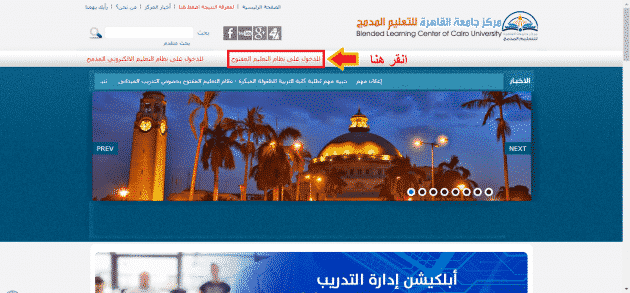 • يمكنك الذهاب إلى صفحة الدخول الخاصة بك في مركز التعليم المدمج عن طريق الذهاب إلى موقع مركز جامعة القاهرة للتعليم المدمج .