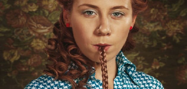 - مشاهدة الفتاة شعر يخرج من فمها.