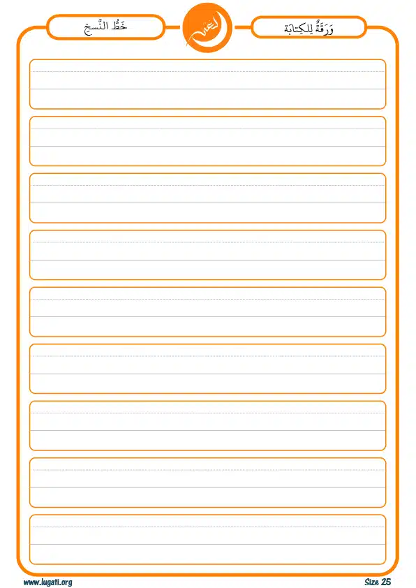 يمكنك الآن تحميل أوراق عمل للتدريب على خط النسخ في صيغة بي دي أف من هنا أوراق عمل للتدريب على خط النسخ.