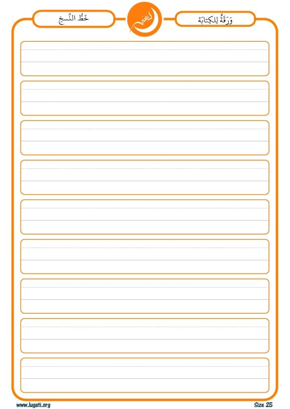 يمكنك الآن تحميل أوراق عمل للتدريب على خط النسخ في صيغة بي دي أف من هنا أوراق عمل للتدريب على خط النسخ.