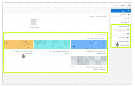 قم بالضغط على اسم المقرر من أجل الوصول إلى النشاط الإلكتروني الخاص به، كما يظهر في الصورة أدناه.