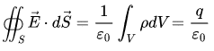 حيث أن القسم الأيسر من المعادلة هو تدفق الحقل الكهربائي ““ عبر السطح ““، و”“: هي نفاذية الفراغ، و”“.