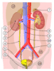 - تتواجد بأعلى كل من الكليتين غدة تعرف باسم الغدة الكظرية – المعروفة إنجليزيًا باسم Adrenal Gland -.