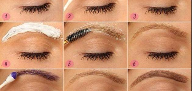 - ثم نستخدم الصبغة لتحديد الحواجب وتتركها لمدة نصف ساعة ثم يغسل الوجه بالمياه الباردة.
