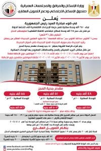 - كما يقوم الجهاز بالإعلان عن توافر وحدات سكنية تخص الاسكان الاجتماعي.