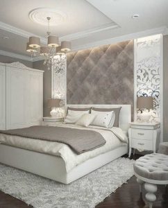 - يتم وضع السرير أو الفراش خلف الجدار الرئيسي ومن كلتا الجوانب يتم وضع الأباجورات التي تحتوي على إضاءة تلائم شكل الغرفة.