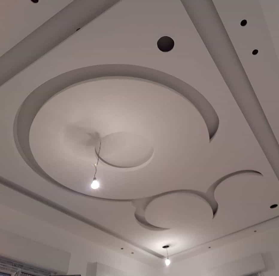- الشكل الدائري وبه رسومات من الجبس بورد مثل الوردة أو الفراش.