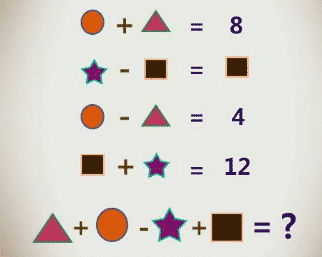 - اختبار ذكاء سريع، مثلث + دائرة – نجمة + مربع =؟
