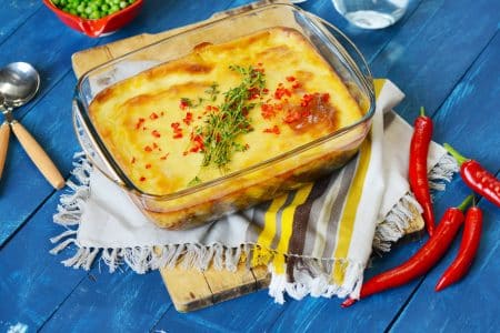 - وفي النهاية يتم إخراج الصينية من الفرن، وتقديمها للتناول ساخنة.