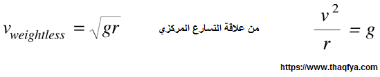 بحيث يمكن ربطها بالتسارع المركزي، فإن شرط انعدام الوزن هو: