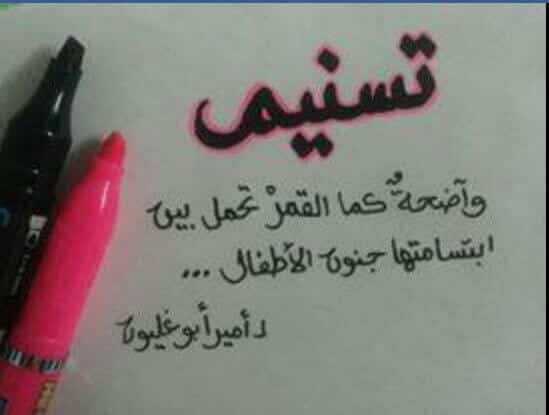 اسم تسنيم مزخرف باللغة الإنجليزية
